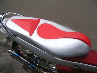 Headlamp cakep berkat penambahan fiber lampunya jadi kece nih, daleman lampu hallogen kuning, angel eye putih, mika bening.